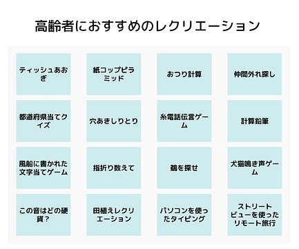 少人数で楽しめるレクragレクリエーションさんご高齢者向けの少人数で楽しめるレクリエーションです Pr Timesさん介護の現場でソーシャルディスタンスを保ちながら少人数で行えるレクです レクリエさん認知症の人のための少人数でできるレク お 21 手作りゲーム